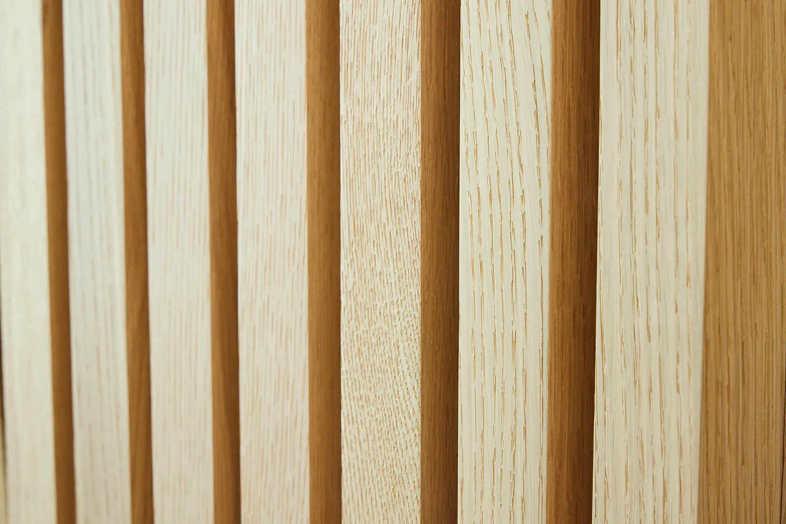 Linaire Oak is an architectural wood wall covering from Duchateau's Linaire Collection. Born from the simple beauty where line and air meet, the North American hand-crafted slats are finished on all sides and come in seamless 10-foot lengths. Panels are 14-3/4 in. W x 119 in. L, and 1-5/8 in. thick. It can be installed both horizontally and vertically.